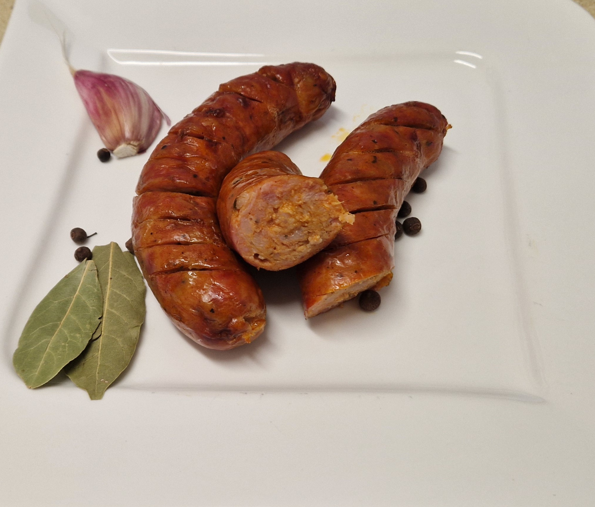Kiełbasa wieprzowa, średnio rozdrobniona, wędzona, parzona o zawartości mięsa aż 94%. Kiełbasa o lekko pikantnym smaku, z wyraźnie wyczuwalnym posmakiem papryki. Do jej produkcji użyto samej soli, bez dodatku substancji konserwującej: azotynu sodu, co powoduje, że doskonale nadaje się na grilla, a także do opieczenia na ognisku. Oprócz tego nie zawiera w swoim składzie żadnych dozwolonych substancji dodatkowych takich jak: